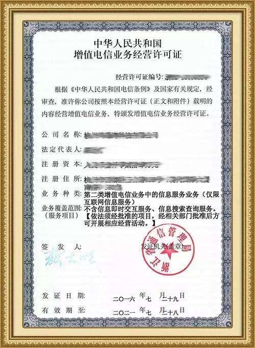 - 中华人民共和国电信与信息服务业务经营许可证(简称:ICP许可证)是指一般性经营性网站的主办者向当地区县申请的证书证明,即《中华人民共和国电信与信息服务业务经营许可证》。